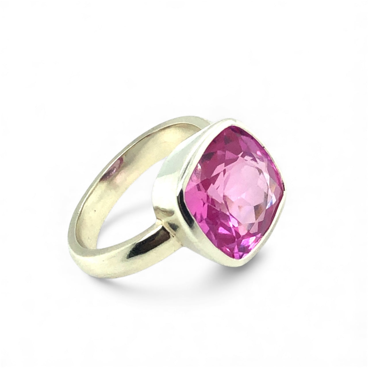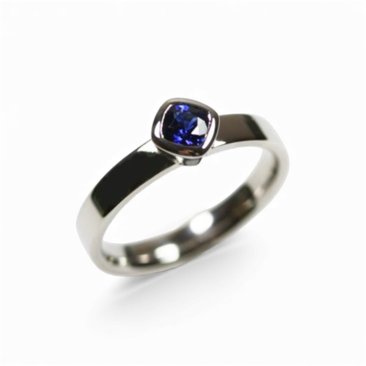 Swiss Blue Topaz & Yellow Gold cushion Cut Ring