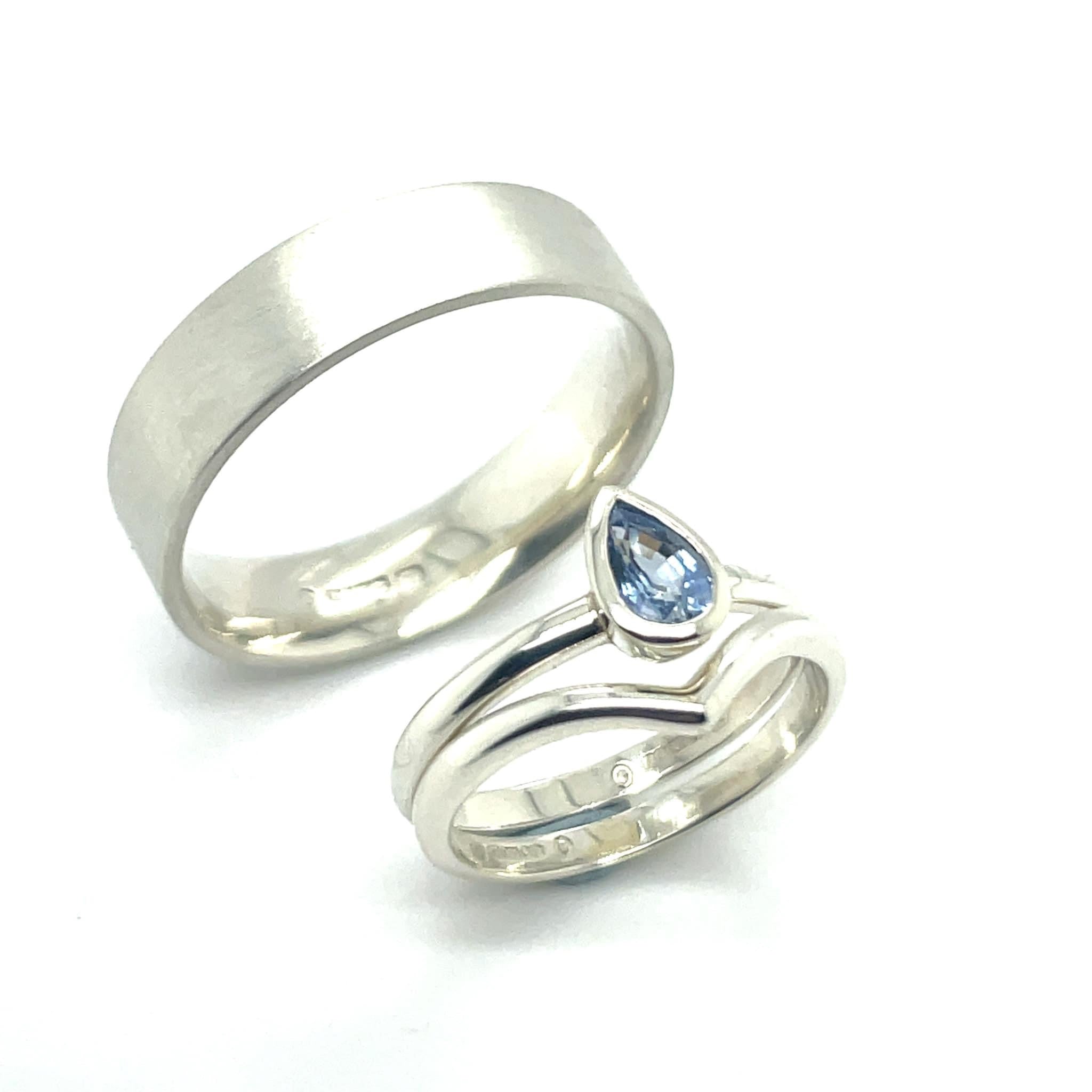 Sky Blue Diamond & Yellow Gold Wedding Ring