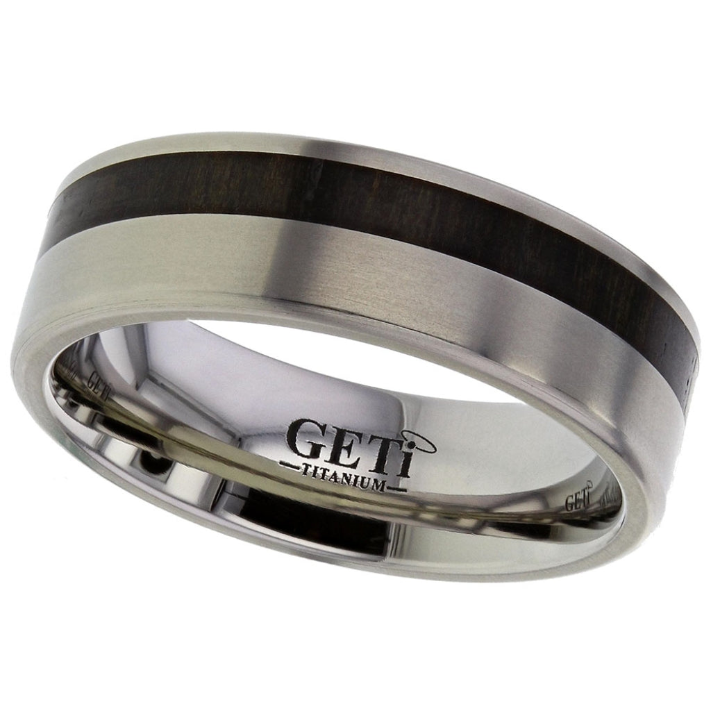 Geti Titanium and Wood inlay rings are custom built using our standard luxury grade 2 Titanium and utilising suitable sustainable wood types to enhance the natural look of the ring.