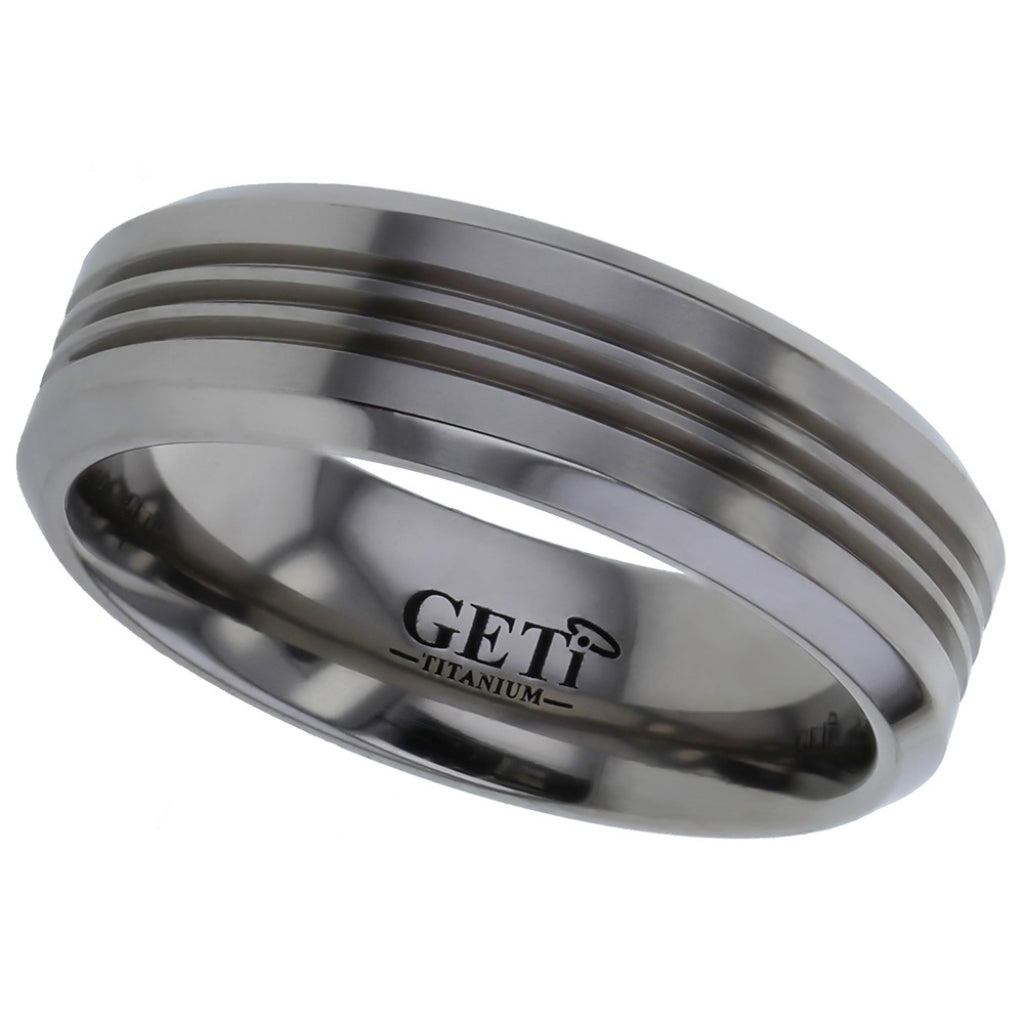 Flat profile Titanium ring with three grooves and chamfered edges.